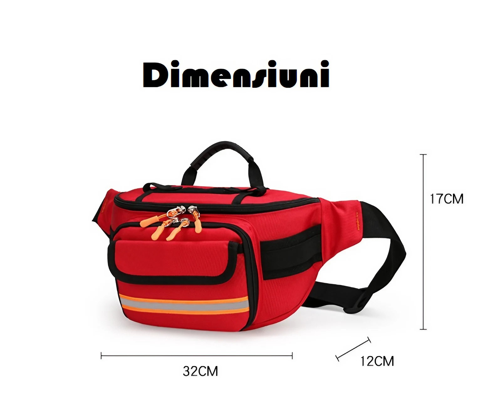 Această geantă de prim ajutor, concepută ca o borsetă practică și portabilă, reprezintă o alegere excelentă pentru cei care doresc să fie pregătiți în orice situație, fie că este vorba de concedii, ieșiri în natură sau expediții montane. Cu dimensiunile de 32 x 17 x 12 cm și o culoare roșie distinctivă, este ușor de recunoscut și de accesat în caz de necesitate.