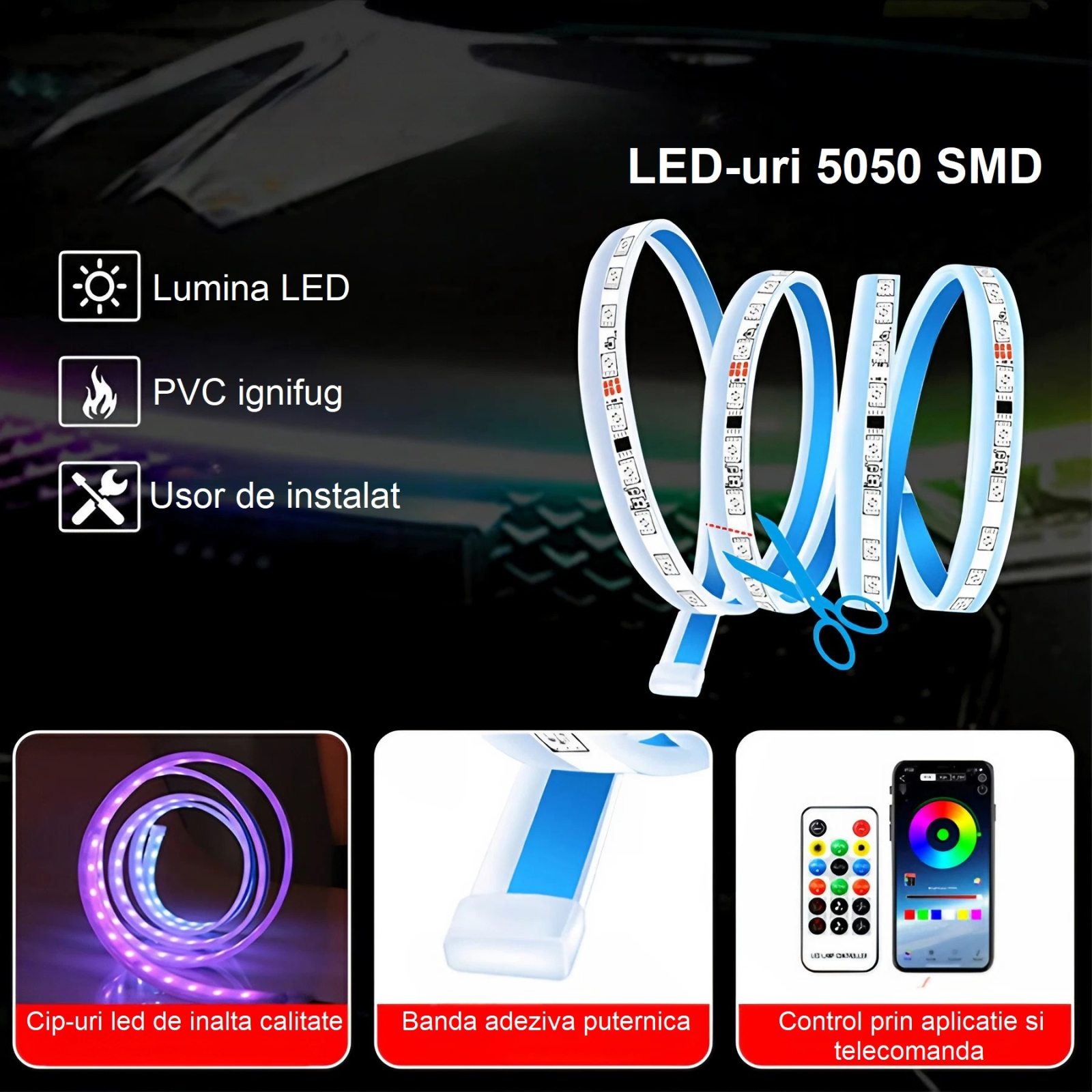 ⚠️ Atenție: Utilizarea benzii LED auto RGB pe drumurile publice nu este legală. Produsul este destinat exclusiv pentru uz privat, decorativ sau off-road.